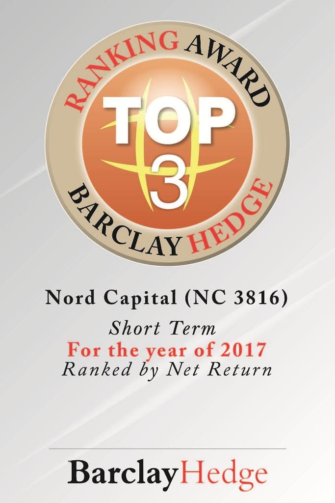 BarclayHedge - международная база данных инвестиционных фондов. Ресурс специализируется на составлении и публикации рейтингов эффективности работы институциональных инвесторов по всему миру. BarclayHedge, ранее известная как Barclay Group, была основана в 1985 году и состоит из группы исследователей, программистов и специалистов по управлению данными, имеющих опыт альтернативных инвестиций. Всего в рейтинге Barclay Hedge представлено более 500 инвестиционных стратегий, участники рейтинга ранжируются по доходности (NET). Результат стратегии NC3816 в 2017 году составил 39% после вычета комиссий.